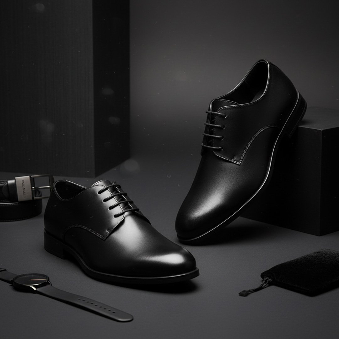 Zara Elevated Black Cap-Toe Derby